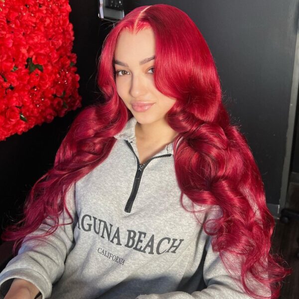 30inch Wine Bodywave Double Drawn 13×4 Swiss Lace Full Frontal Human Hair Wig