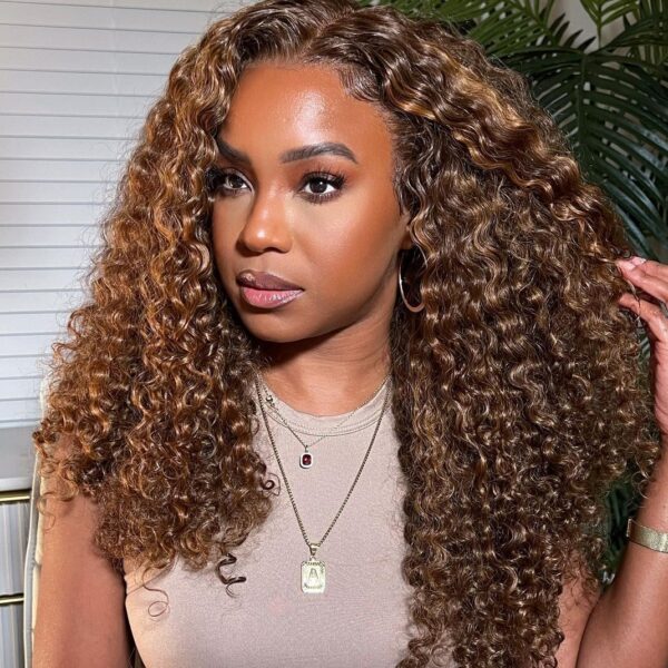 Double drawn 4×4 water curls full closure wig human hair highlights piano colour 22 inch Factory made wig