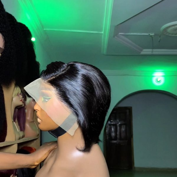 Super Double Drawn Vietnam Pixie curls 13×4 Swiss Lace full frontal Glueless wig human hair